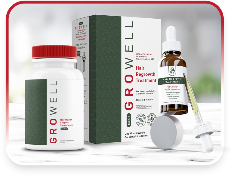 The active ingredient in GroWell Hair Regrowth Treatment is Minoxidil (Women-2%, Men- 5%), which is FDA-Approved and clinically-proven for hair regrowth in men and women.