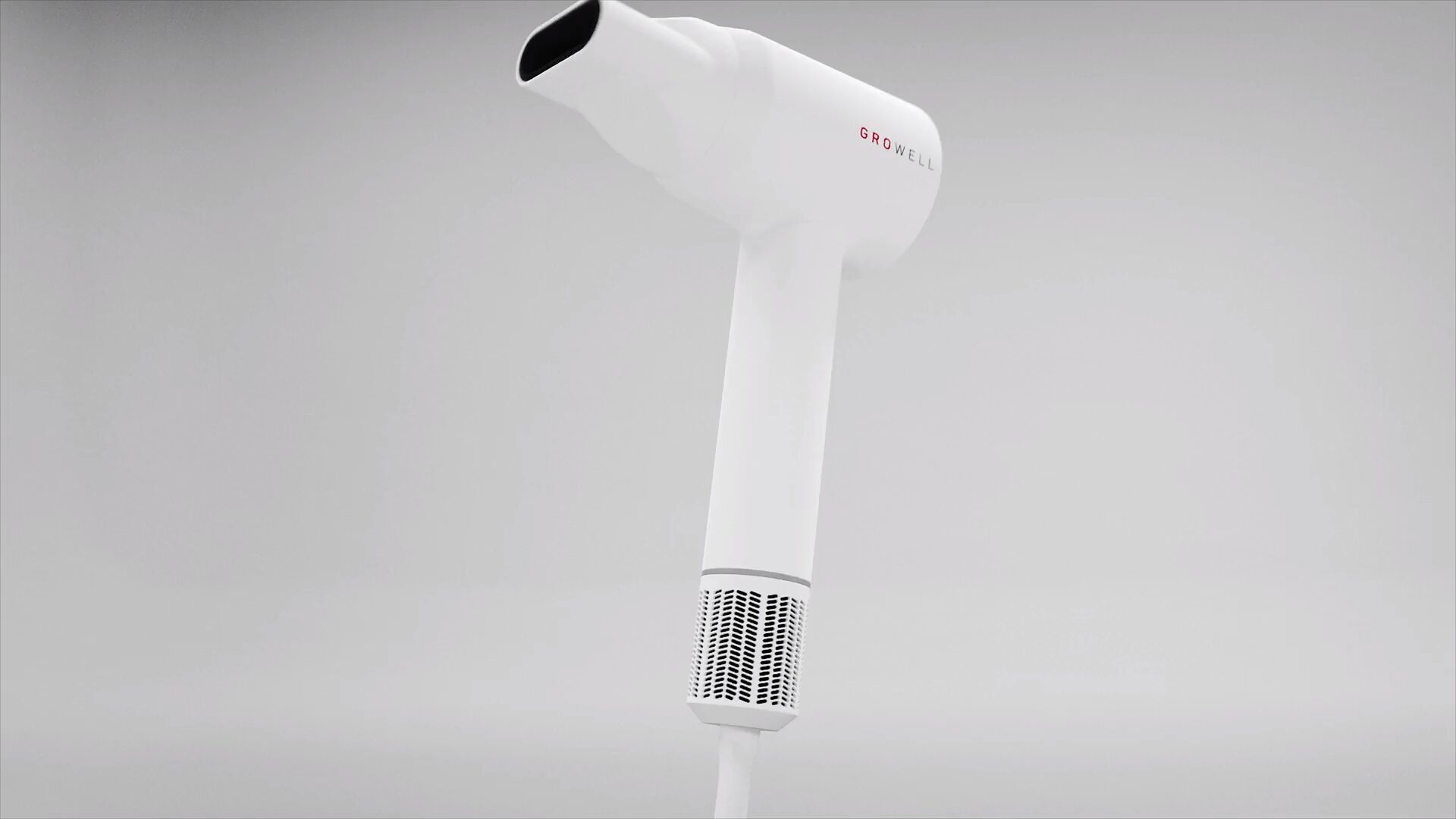 The GroWell Hair Dryer uses advanced ionic technology to reduce drying time and static, while automatically modulating heat to protect the hair cuticles and shafts from damage.